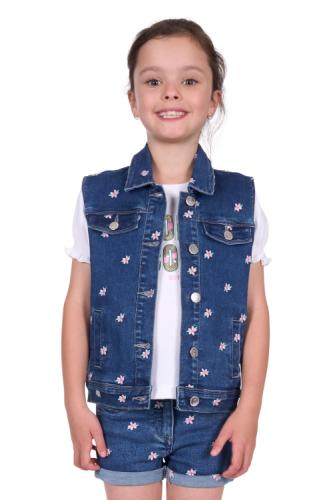 All over floral embroidery, stretch for comfort and movement, front chest pockets and side welt pockets, rust proof metal accessories