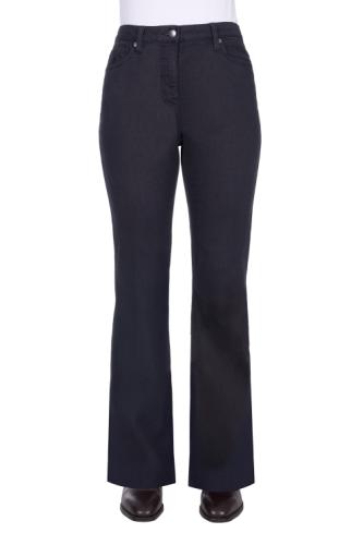 32" leg - Trouser jean, coloured denim with added wool, brushed for softer handfeel and warm thermal qualities, stretch for comfort and movement, mid rise, No-Gap elastic waistband, more room at the knee and a gradual opening down the leg, double stitched for strength, rust proof metal accessories, YKK zipper, coin pocket horseman embroidery, mock leather badge