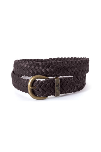 Metal buckle, embossed logo metal keeper, weave plaited strap, 30mm (11/4”) strap width
