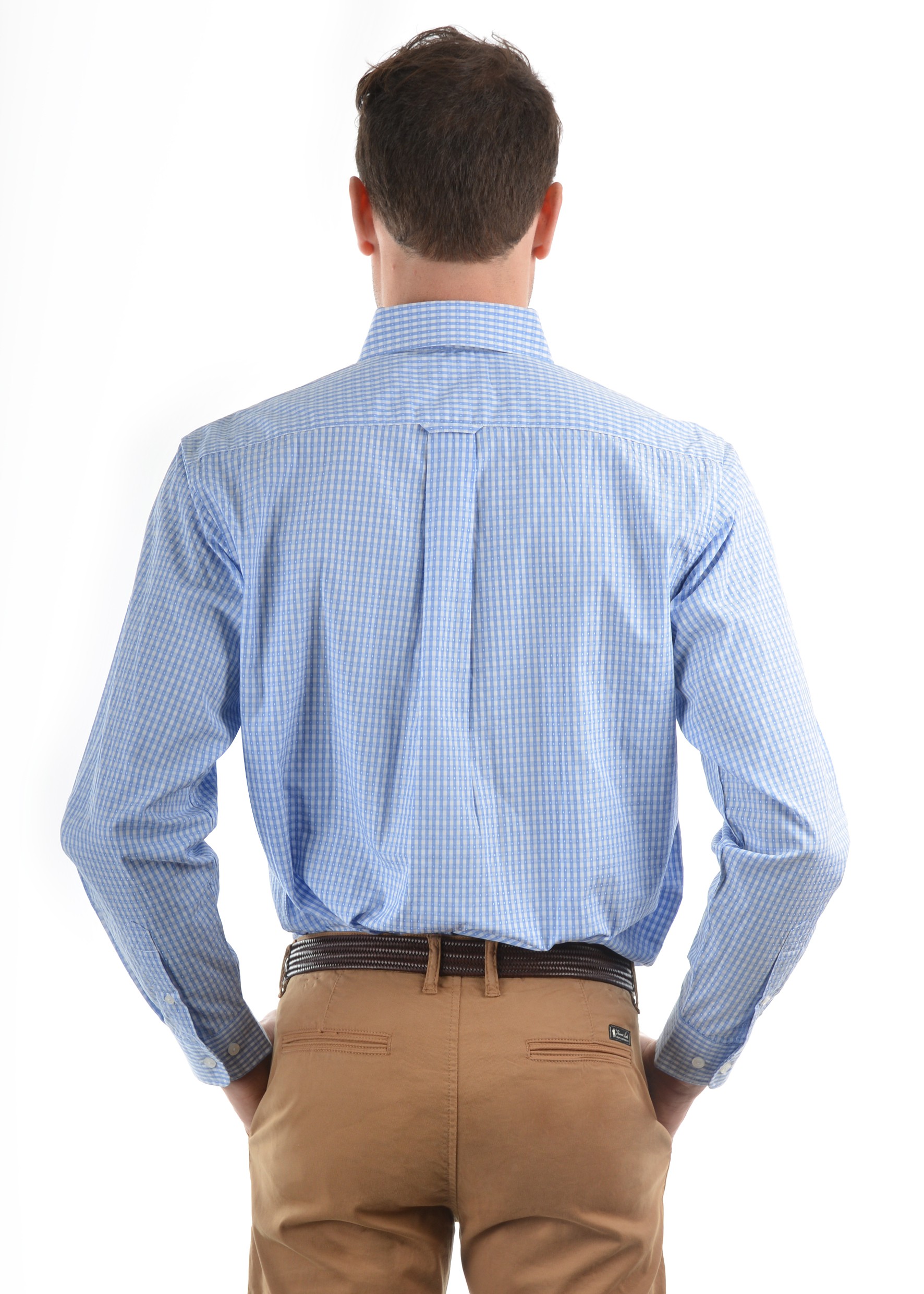 Features: Single chest pocket, Long shirt tail, Back pleat for comfort, Concealed collar peak buttons, Removable collar stays.