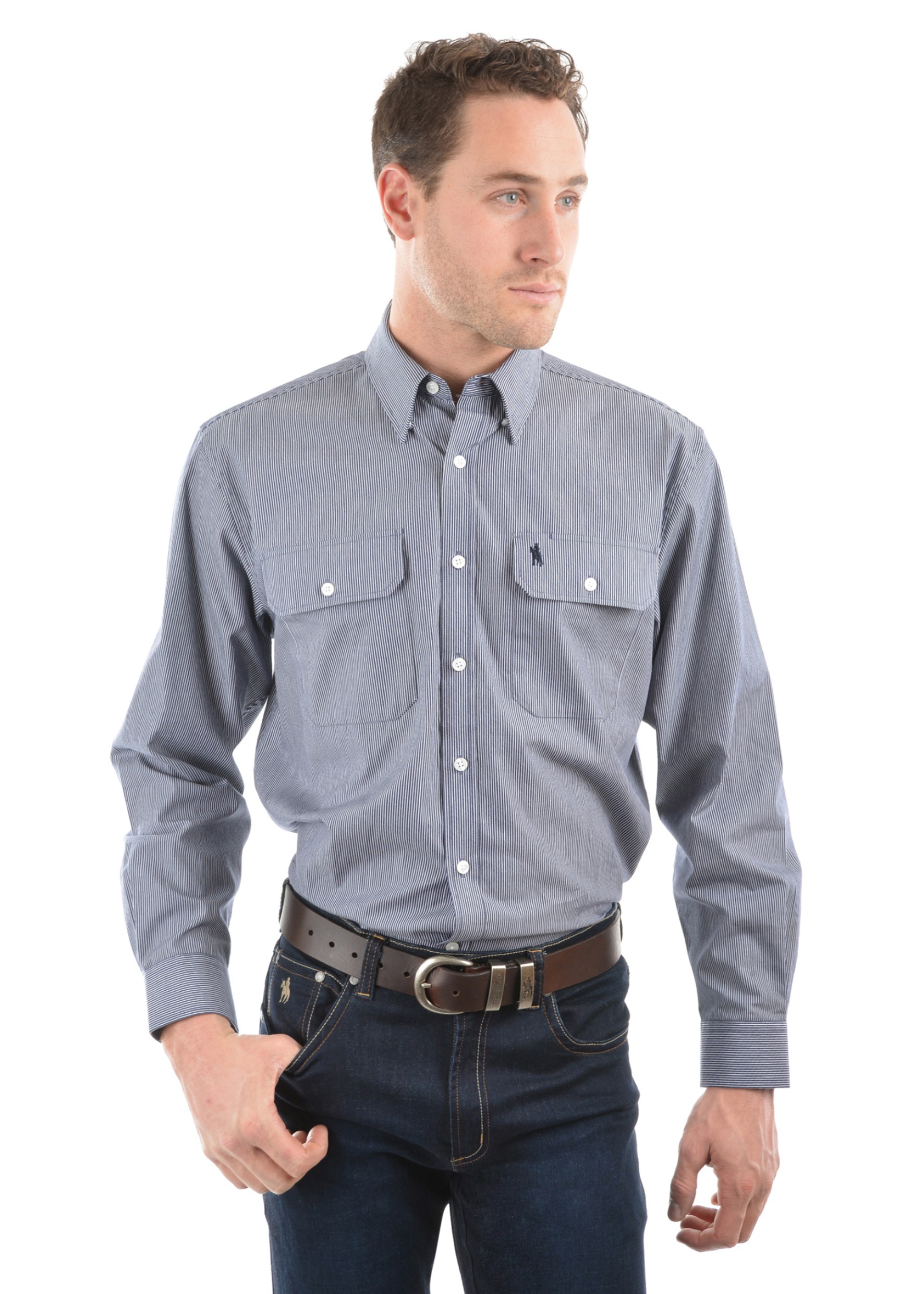 MENS GRAFTON STRIPE 2-POCKETS L/S SHIRT